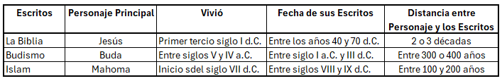 Distancia de redacción entre los escritos de otras religiones y los hechos que relatan